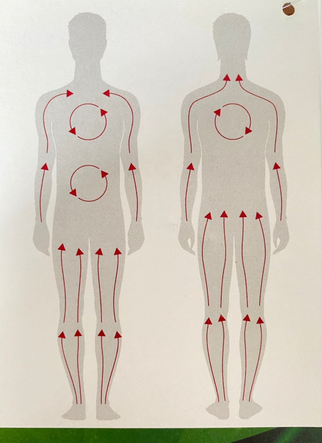 Bürste Deine Arme und Beine mit gleichmäßigen geraden Strichen immer zum Herz hin. An Bauch und Rücken führe kreisförmige Bewegungen im Uhrzeigersinn durch.